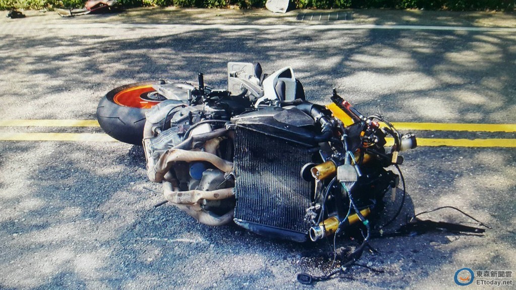 未料,6小時後,只差100公尺距離,溫姓騎士行經34.2公里處,才剛過彎,沒想到失控高速撞上對向護欄,連人帶車往前翻轉滑行,一旁3名路過的騎士嚇得減速回頭看,目擊了重機衝撞護欄當場死亡,他的機車嚴重毀損,車輪還噴飛到20公尺外,現場血跡斑斑,大片車油灑滿地,溫男則被緊急送醫,傷重宣告不治。