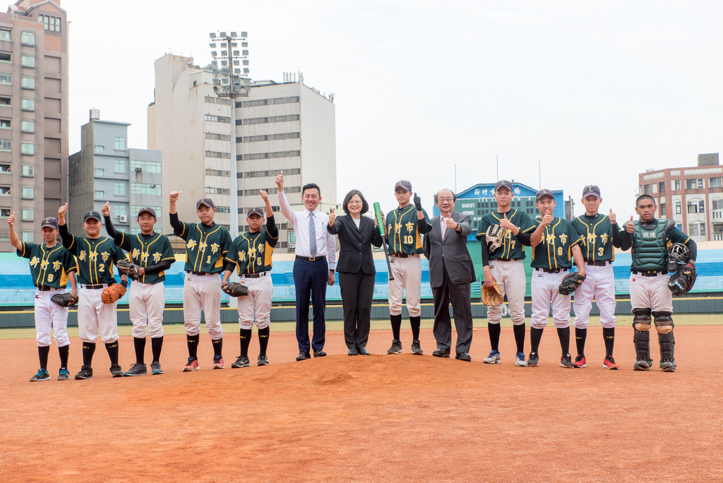 蔡英文總統上午視察新竹市棒球場,並關心本市成德高中棒球隊練球,親自贈送簽名球棒,期勉球員們努力練習,為新竹市爭光,也為台灣棒球再創佳績。