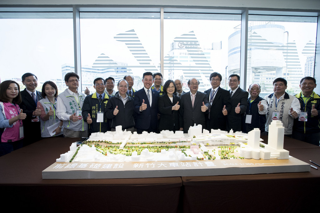 蔡英文表示,新竹市是台灣最重要的科技城市之一,也是「具有未來性」的城市,因此公共建設的腳步,必須跟上人口和產業趨勢,發展潛力才不因此受限,藉由「新竹大車站計畫」的推動,興建跨站平台,聯結前後站,「在台灣是嶄新的做法」,將加快評估和規畫的進程,儘快展開工程建設。