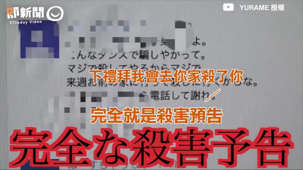 日本Youtuber「YURAME」日前被人發下「殺害預告」,對方要求他打電話道歉,否則就要親自上門殺人。打電話過去調查後才發現對方是名國中2年級的少年,而且態度非常差,似乎不認為自己有錯。後來YURAME只好向學校舉發,少年也被處罰,但沒想到少年的母親竟打電話來罵人,說YURAME害她的兒子沒辦法上好高中。