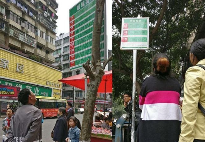 根據《成都商報》報導,簡陽市這種超高站牌不只高,還把30多個站點擠在寬度40公分的取快,讓人幾乎無法閱讀。一名在公車站附近工作的義工表示,每天都會有至少10個老人和他問路,「老人身形比較矮,視力又退化,看不見呀!」