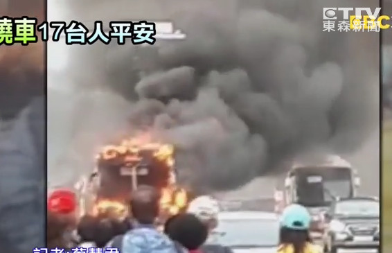 該旅行團團員表示,事故發生之前,在車上聞到有燒焦味,原本以為是附近燒雜草的味道,不過坐在最後排的團員發現是遊覽車冒煙,連忙通知司機將車停在路肩,所有人倉皇逃生,隨後遊覽車就起火全面燃燒。