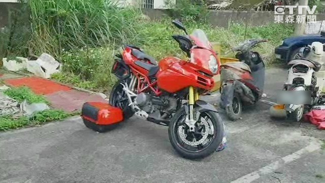 車禍現場,紅色重機車身滿是刮痕,廂型車也因為強力撞擊力道,車殼明顯碎裂,後輪上還有一道明顯的重機把手撞擊點痕跡,柏油路上也留有一道剎車痕。死者鄰居指出,夫妻倆待人都很客氣,黃男還有一名姊姊和弟弟,姊弟倆假日時都會回來陪伴母親。