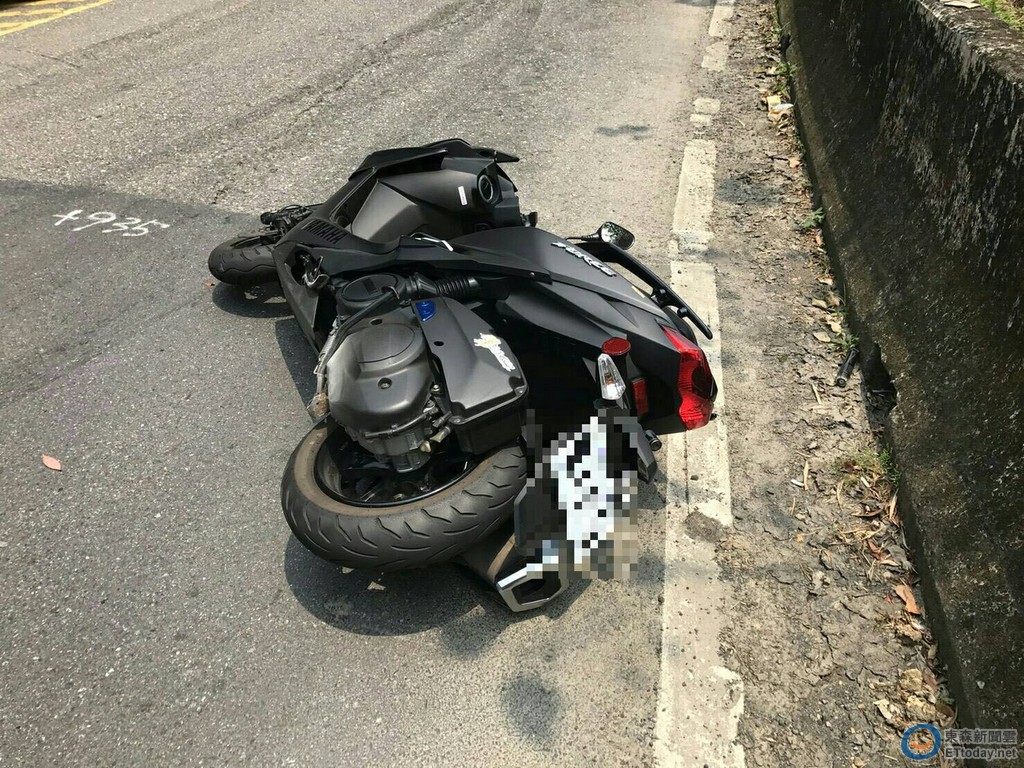 ▼北宜公路16公里處今日又發生騎士疑似「卡普」過彎,隨後自摔慘死車禍,機車噴飛離騎士數公尺遠,這已是北宜2星期來發生第三起機車過彎死亡車禍。(圖/記者孫曜樟翻攝)