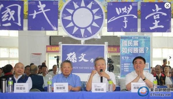 ▲詹啟賢、郝龍斌、韓國瑜於桃園龜山區,談參選理念爭取黨票。(圖/龜山區黨部提供)