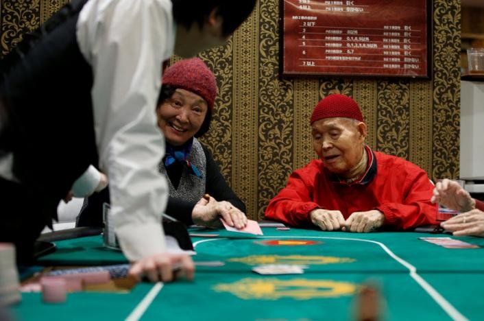 ▲日本的「拉斯維加斯」養老中心,老人們正在牌桌上較勁。(圖/路透社)