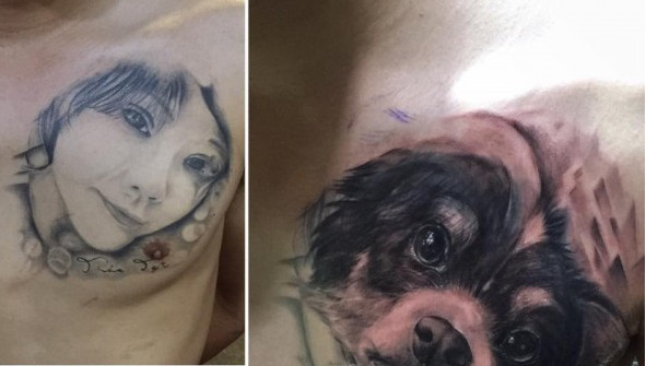 一段感情的開始總是帶著轟轟烈烈的火花,愛到慘死甚至可以為對方做出任何瘋狂的事。泰國一名男子為了向女友表達「真切的愛意」,在胸口上刺上女友的臉和暱稱來證明愛的濃烈,沒想到不到半年就分手,難過之際請設計師改圖成「狗頭」,笑翻大票網友。