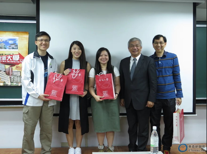 ▲ 世新大學陳清河副校長(右二)向香港東華三院馬振玉紀念中學師長致贈禮品。