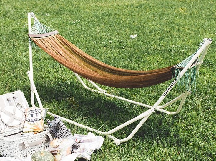 野餐日當天肯定整片草原高朋滿座,一望無際的人海,搶不到樹可以掛吊床?沒問題~自帶這款摺疊式吊床,卡位不求人!躺在上面搖搖晃晃午睡超假掰~保證左右鄰居羨慕的不要不要的!