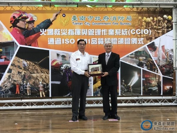 在台南市消防局長李明峯指示及帶領之下,制訂台南市指揮模式(CCIO),歷經5年多不斷調整與精進,於14日經過財團法人金屬工業研究發展中心之ISO認證小組認證,由該中心林仁益董事長頒發ISO9001:2015證書,成為全國首先針對火場指揮與管理系統取得ISO9001認證之城市。