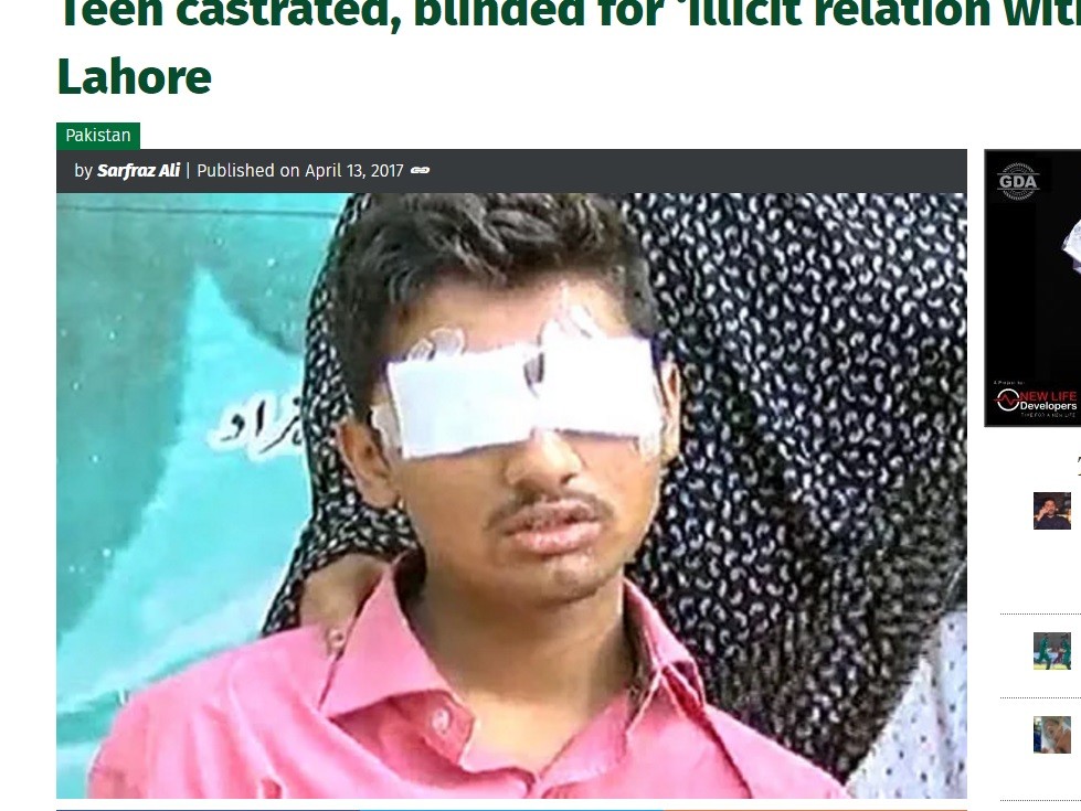 別讓爸爸不開心!巴基斯坦一名15歲少年被控與少女「共度春宵」,被對方憤怒的家長綁架,並且活生生將雙眼挖出、砍斷陰莖,雖然緊急送醫治療,仍導致他重度殘疾。目前警方已經嫌犯逮捕到案,詳細案情正在調查中。