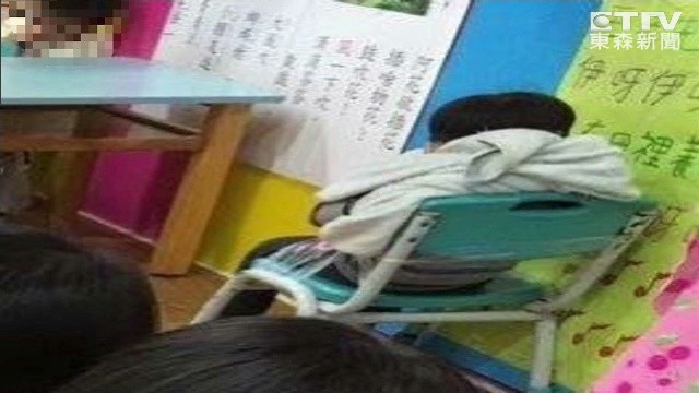 ▲男童被老師綁在椅子上。