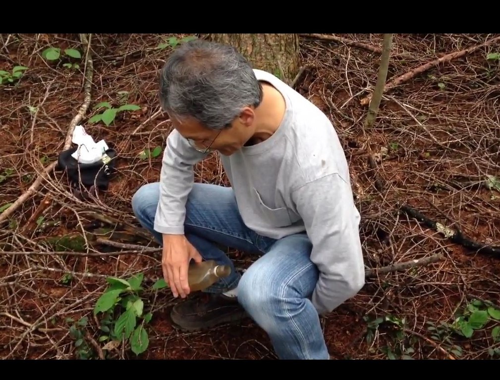 ▲一罐水瓶,一片樹葉,就能讓伊澤的大便回歸大自然。(圖/翻攝ノグソフィア臉書粉絲頁,下同。)