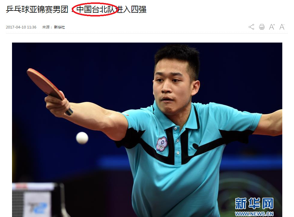 此次亞洲桌球錦標賽,排名世界第一的馬龍、丁寧表現備受矚目,卻接連遭到淘汰,隨後朱雨玲、許昕也失利;不過,最引人討論的並非賽事結果,而是陸媒自11日起,統稱台灣為「中國台北隊」,而非原「中華台北隊」。