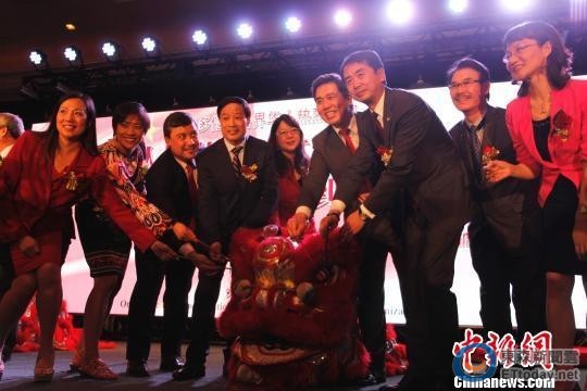 ▲中國駐多倫多總領事何煒與多倫多華人團體聯合總會主席林性勇及加拿大三級政府政要代表等(圖/中新網)