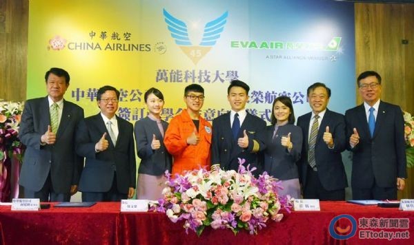 華航董事長何煖軒表示,中華航空與長榮航空都是桃園在地產業,萬能科大航太相關科系的同學眾多,學生也多是桃園在地子弟,透過簽約儀式,可讓包括桃園航空城及航太產業發展得更好。