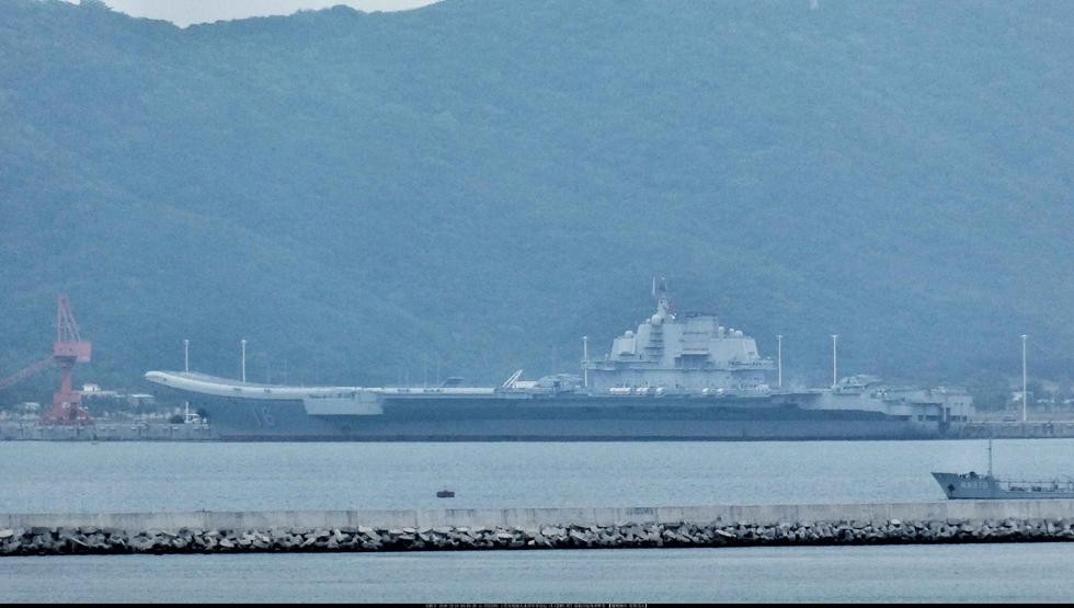 ▲大陸網友曝光遼寧艦航母停泊在海南三亞某軍港的碼頭。(圖/翻攝自大陸網站)