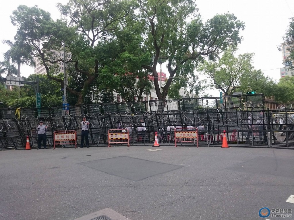 ▼立法院外圍滿拒馬、蛇籠。(圖/記者翁嫆琄攝)