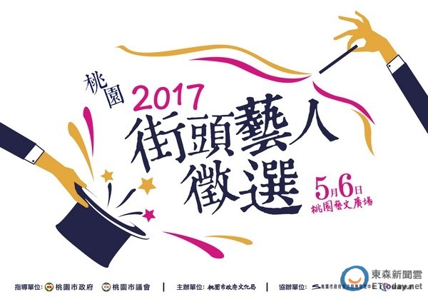 「2017桃園街頭藝人徵選」將於5月6日(星期六),在桃園藝文廣場辦理徵選,歡迎民眾踴躍報名參加,齊聚桃園展現街頭藝術實力。通過徵選者可取得市府核發之「桃園市街頭藝人證」,憑證可於市內各景點申請展演。