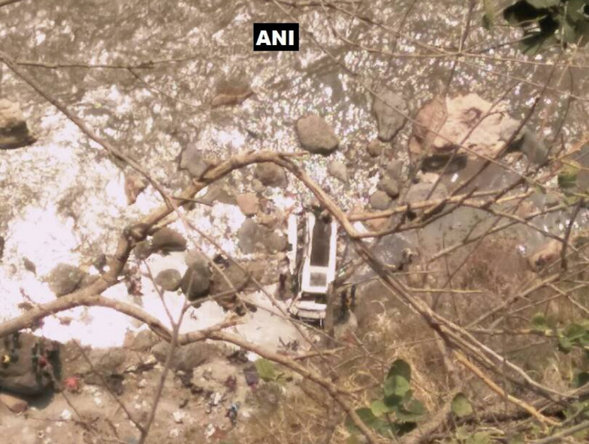 ▲印度巴士墜落喜馬拉雅山區深谷,至少45死。(圖/翻攝自ANI推特)