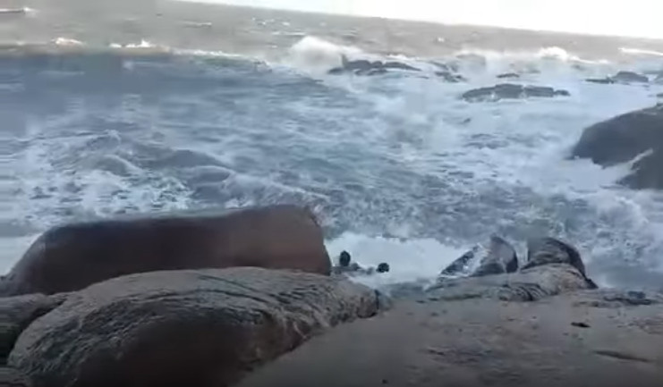 巴西一對表兄妹上個月從聖保羅到Farol de Santa Marta海邊遊玩,但他們不顧危險和旁人的阻止,跑到一處礁岩上自拍,結果慘遭巨浪捲走,2人在湍急的海中拚命掙扎,但最後仍釀成一死悲劇。