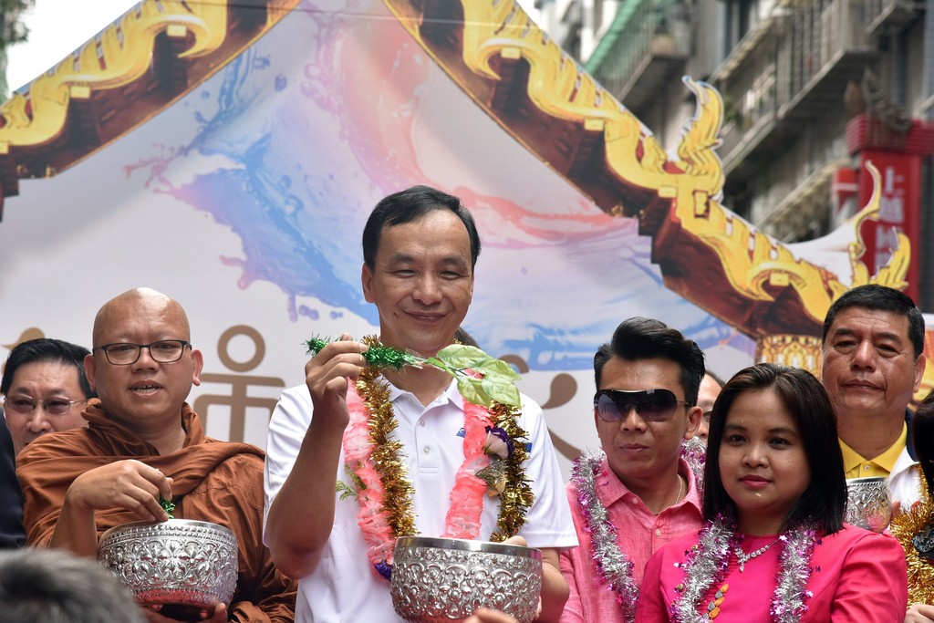 「2017新北市潑水節」主活動16日在中和華新街盛大登場,市長朱立倫參加浴佛儀式為市民祈福,並與民眾一起濕身同樂。