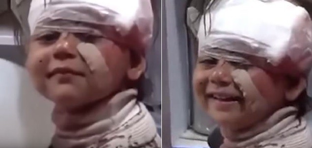 由於事發突然,一批又一批的傷患紛紛被緊急送往醫院搶救,當中一名女童身上滿是鮮血,頭部因受創包裹著一層又一層的紗布與繃帶,面對無情戰火,她只是靜靜地坐在救護車上接受治療,但當她發現攝影機在拍攝時,儘管滿臉汙泥,臉頰上還有清晰可見的血漬,仍不忘綻放燦爛的笑容,這一幕,讓不少人徹底心碎。