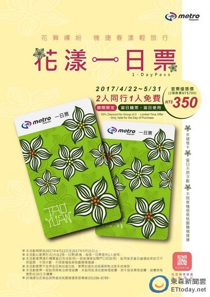 桃捷公司指出,此活動票卡採當日購票、當日使用,啟用後於當日營運結束前可不限區間、不限次數、不限車種搭乘機捷列車。而桃園市將於4月29日至5月7日展開桐花嘉年華系列活動,更在本周六(4/22)至5月14日於新屋盛大舉辦農業博覽會,展現桃園在地農業特色,並推廣農博輕旅行概念。