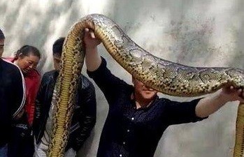 江蘇省灌南田樓的一位居民在三莊村的一條河裡發現大蛇,當地村民王先生表示,當天上午村民正從河裡抽水灌溉,突然發現了這條大蛇,「當時還以為是一根粗樹枝,但走近一看其表面有花紋,竟然是一條大蛇。」,這條蛇立刻被當地村民剝皮取膽,並被切割成數段放置在水中浸泡。