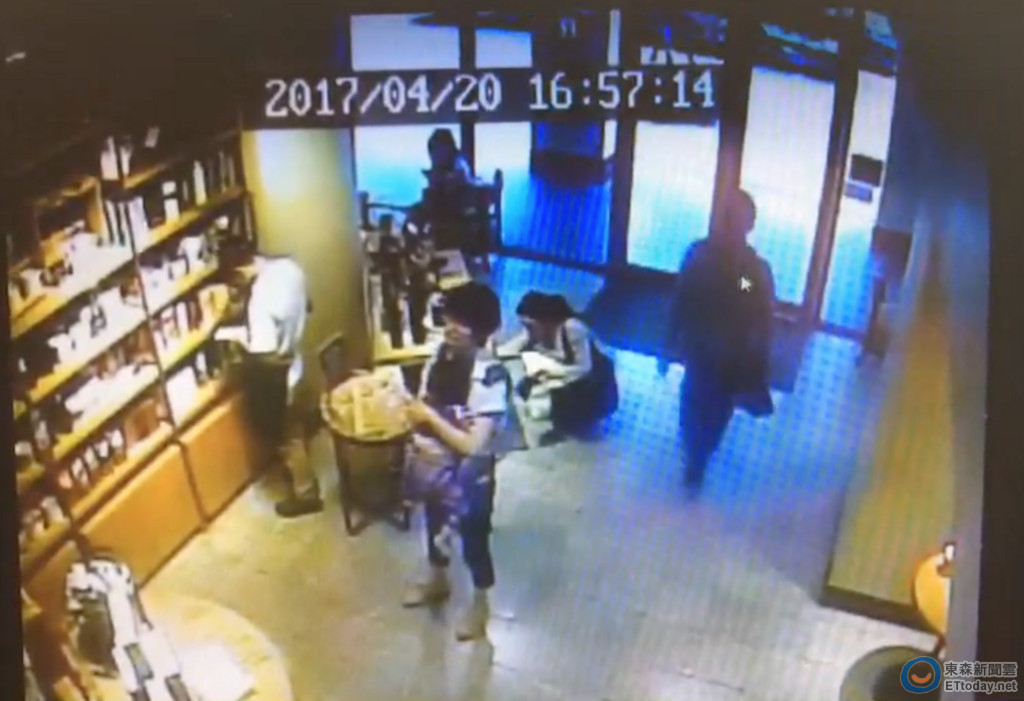 ▲嫌犯拿走包包後直接走出星巴克。(圖/記者柳名耕翻攝)