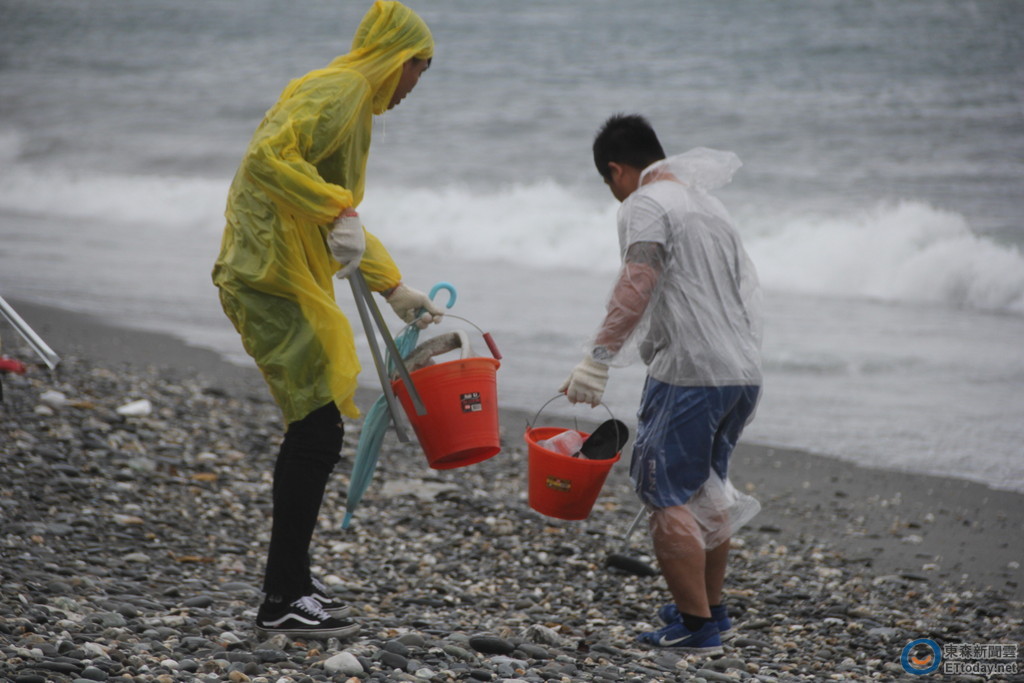 隨後黃健庭特別帶領大家在海濱公園及沙灘四處進行全面性的清潔撿垃圾,在沙灘撿了不到10分鐘,水桶裏垃圾就已經滿出來了,其他與會貴賓及參與人員也是「滿載而歸」,包括有鞋墊、女性用品、塑膠袋等,大家都驚嘆怎麼會有那麼多的垃圾。