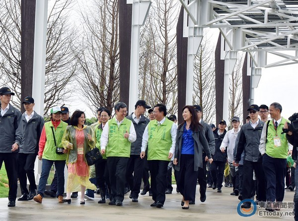 「2017桃園農業博覽會」22日開幕典禮後,市長鄭文燦陪同副總統陳建仁,前往會場參觀「生命樹」、並經由光電廊道抵「奉茶亭」接受市長夫人林俞汝親自為貴賓奉茶,了解桃園農博展區內、四大亮點的「循環經濟」,所展現3R特色。