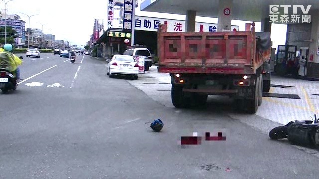▲砂石車迴轉要加油,直行騎士慘摔遭輾亡。