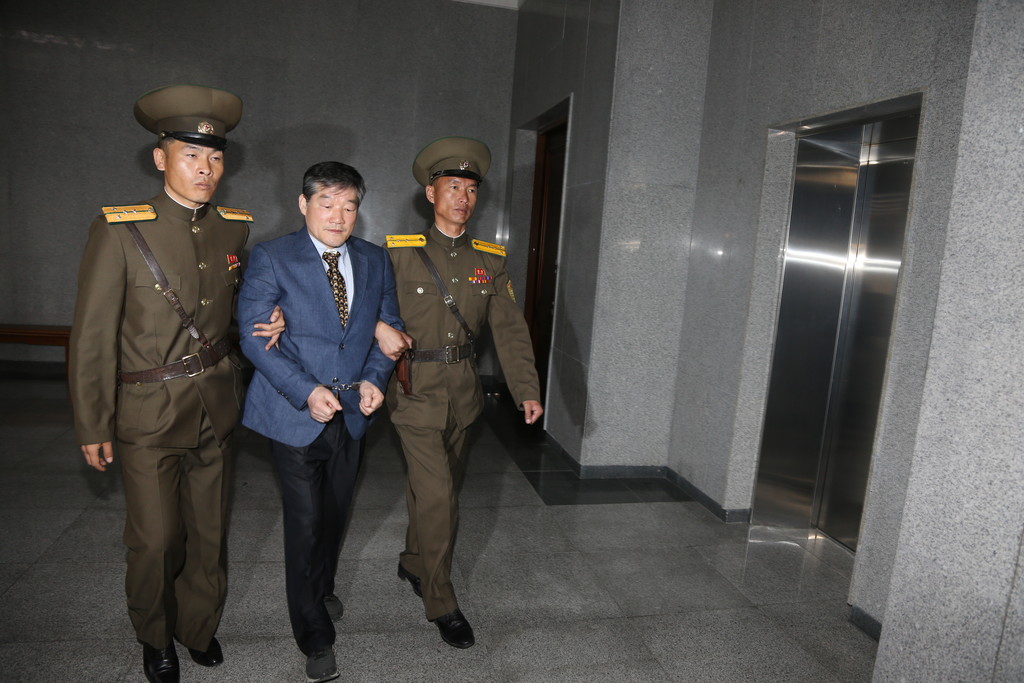 ▲目前總共有3名美國公民遭北韓拘留,上圖是牧師金東哲(中)。(圖/達志影像/美聯社)