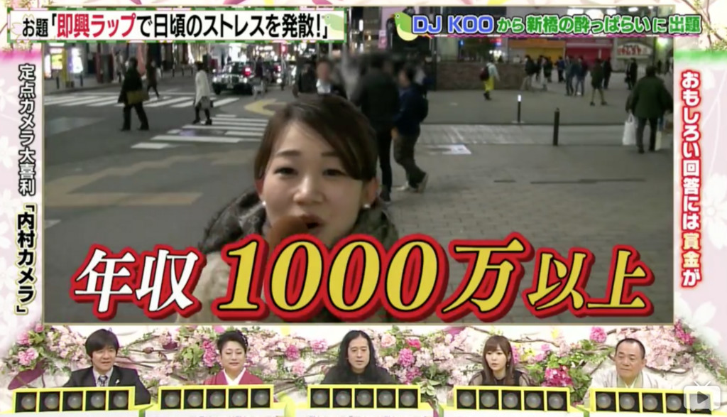 日本綜藝節目《內村攝影機》,在街頭請路人用即興Rap抒發自己平日的不滿,其中有一名家教甚嚴的女性,在鏡頭前大呼,媽媽對她選男友的條件超嚴格。