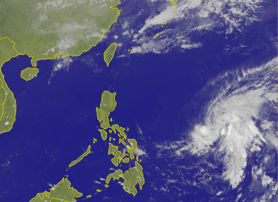 ),相當於10級風,7級風暴風半徑100公里,預測周四上午8時在鵝鑾鼻東南東方1550公里海面上。
