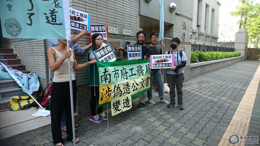 針對台南市工務局在4月12日內政部地政司召開「台南市西港區東側外環道(南段)」案第4次土地徵收審議,出示一份查估時土地所有權人被要求簽名的普通文件,並將其簽字曲解為「土地所有權人自行申請全部拆除」,土地所有權人深感憤怒,前往台南地檢署按鈴申告,並主張當天會議無效。