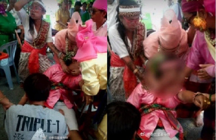 ▲乩童拿刀刺自己,原本想炫耀金剛身,沒想到釀成悲劇。(圖/翻攝自泰國星暹傳媒微博,下同)