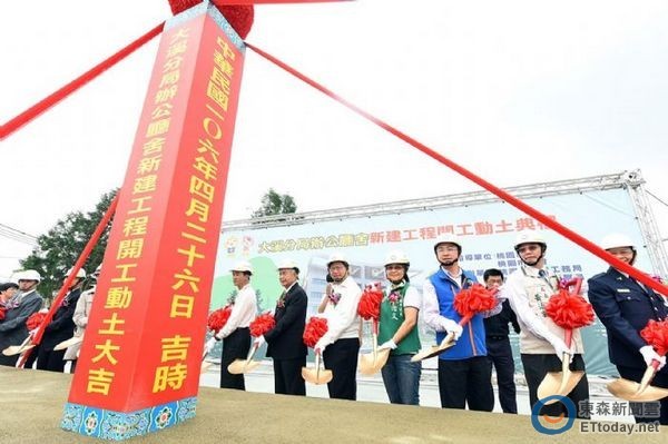 桃園市警察局大溪分局辦公廳舍、26日舉行新建工程開工典禮,市長鄭文燦於出席典禮中指出,大溪分局辦公廳舍迄今已半世紀,建築物結構經土木技師評估有安全風險,且因空間狹小,有重建必要;市府決定在大溪分局三層派出所現址重建新大溪分局,工期約600天,預計107年11月完工,給警察同仁及市民更好的辦公及洽公環境。