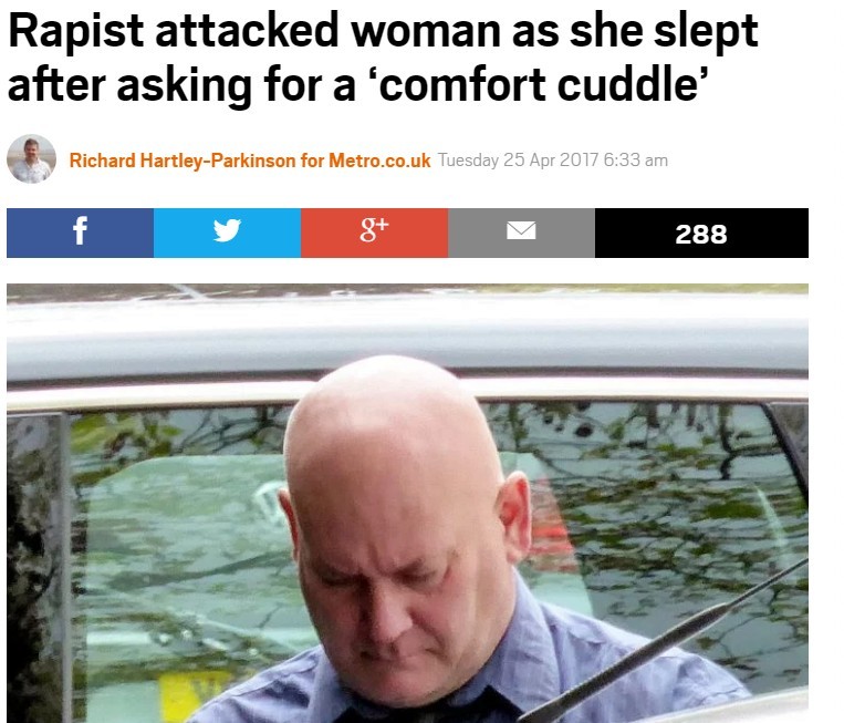 英國一名女子因為失戀心情不好,便找男性好友埃利森 (Stewart Ellison)喝酒訴苦,還跟對方「討抱抱」安慰她,並表明不想發生性關係,只希望能被抱著睡覺,結果睜開眼發現對方壓在自己身上、遭到性侵。