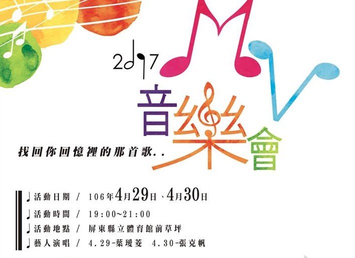 你的命定歌曲是哪些?當旋律響起,是否讓你想到了某些人某些事?4月29日、30日二天晚間7點至9點,快揪好友一起在月光下盡情飆歌!葉璦菱及屏東子弟張克帆也會與大家同樂,同時穿插趣味的猜歌曲、歌詞接力活動,加上周邊文創市集,好吃、好玩、好看與好聽盡在屏東。還記得上一次聽演唱會是什麼時候?以為那個熱血沸騰的曾經離自己很遙遠嗎?其實青春沒有開始也沒有結束,只要愛上熱血沸騰的自己,青春就是永恆!