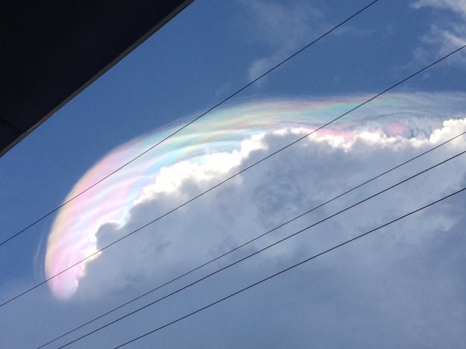 少女Anne Salikala 在帕加第昂(Pagadian)23日的天空突然看到罕見美景,一層薄薄的彩虹雲漂浮在白雲上,她立刻將這種美景拍下來放上臉書與大家分享。但是這種現象沒有停留太久,它與彩虹形成的原因類似,太陽光經過雲朵上的微小水滴(冰晶),折射後就出現七彩現象。這種現象的特點就是捲雲層裡的冰晶數量要足夠,光影再透過雲層結構的排序後,天空就會像用了水彩渲染後的繽紛,這也難怪外媒會把這種罕見現象形容成「獨角獸的鬃毛」。