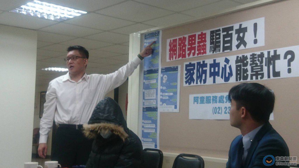 童仲彥今早與遭聲稱遭網路男蟲騙財騙色的受害女性召開記者會。該名女子表示,當初被男蟲以結婚為前提騙走財產,後來走進法律程序後擔心拿不回遭騙的錢財,盼政府能協助受害的姐妹;童則表示,北市家暴中心都是接獲通報,才協助受家暴或性侵的受害人,要求家暴中心化被動為主動,同時他也會提供法律服務。