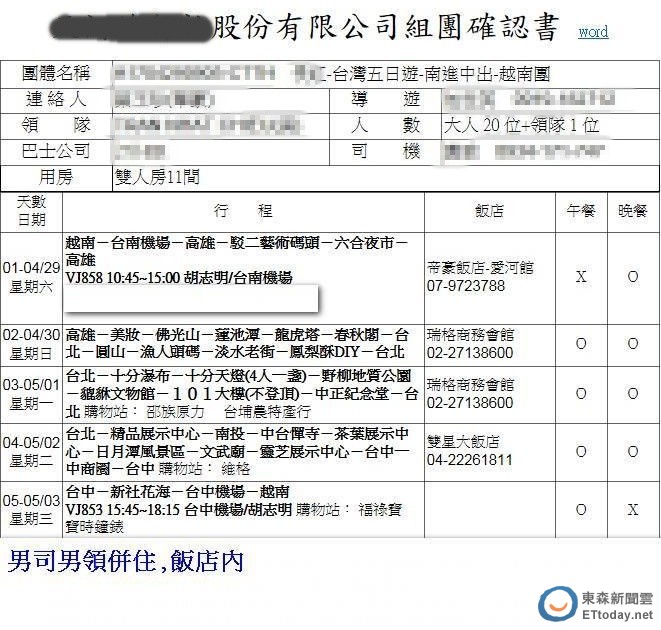 ▲某旅行社越南客團行程。