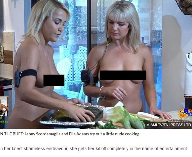 美國佛州「邁阿密視電視台」(Miami TV)節目女主持人珍妮․史可達瑪麗亞(Jenny Scordamaglia)向來以大膽的作風受到關注,近日更是大膽的嘗試全裸做菜,完全三點不遮,再次躍上新聞版面。