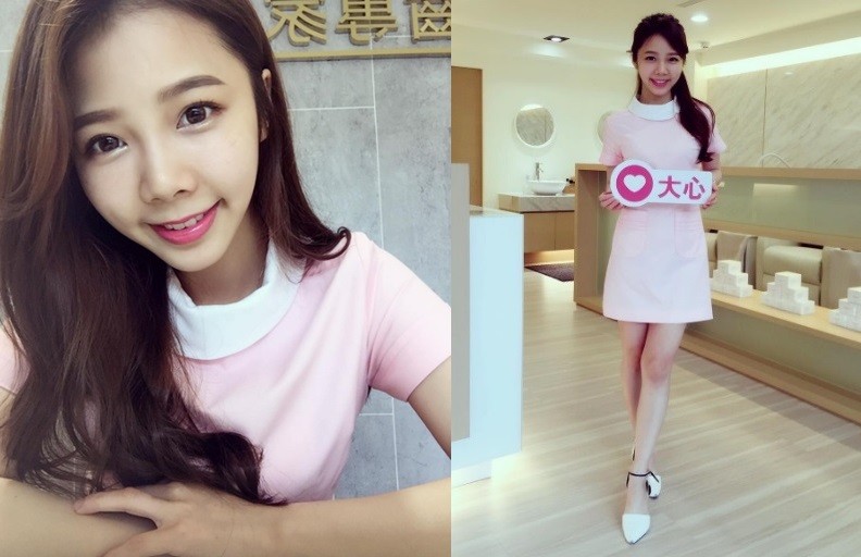 近日一組正妹穿著牙醫助理粉紅色制服的照片,在網路上引起瘋傳,許多網友都被電得不要不要的,紛紛尋找這位有著甜美笑容、白皙美腿的妹子,而她的Instagram也被找出來,原來她在台中的牙醫診所上班。