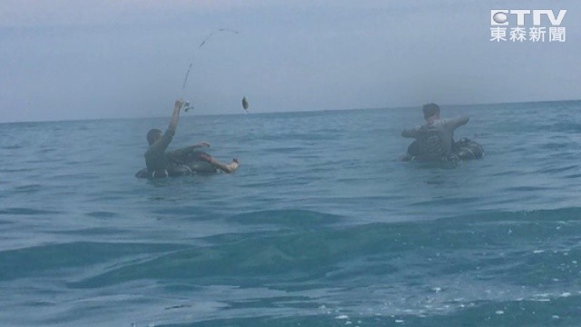 海巡隊表示,2人搭「輪胎」當浮具出海的釣魚方式並未違法,但仍提醒大家出海仍須穿著救生衣等裝備,注意海上安全。