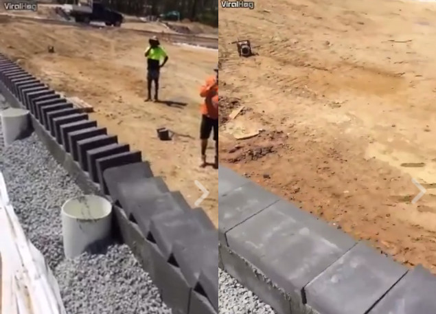 砌磚塊也能變成推骨牌!專頁JaninaDesign在臉書上傳一則影片爆紅,內容是一群工人正把做好的牆鋪上磚塊,他們將磚頭當成骨牌,輕輕一推便一塊塊接連倒下。神奇的是,當最後一塊磚塊躺平時,其他原本呈現傾斜的磚塊,也跟著一片片躺平排好,圍牆的上緣也就這樣鋪好了。