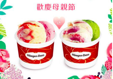 Häagen-Dazs慶祝母親節,冰淇淋雙球買1送1進入最後倒數,即日起到5月31日止,只要參加「獻給媽媽的歌-純愛音樂盒」網路活動,打造客製化「完美女人」古典音樂盒,並分享到Facebook獻給心目中的完美女人,即可獲得哈根達斯冰淇淋雙球買1送1優惠券。