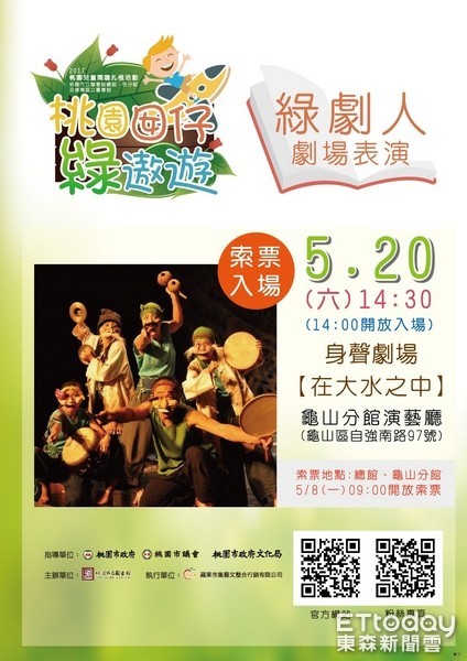 市立圖書館為推廣0~5歲的學齡前幼兒閱讀扎根,舉辦以「環境教育」為題的「2017桃園兒童閱讀扎根活動-桃園囡仔綠遨遊」,系列活動之5月份【綠劇人】劇場表演將於5月20日(六)下午2點30分在龜山分館演藝廳登場(龜山區自強南路97號)。